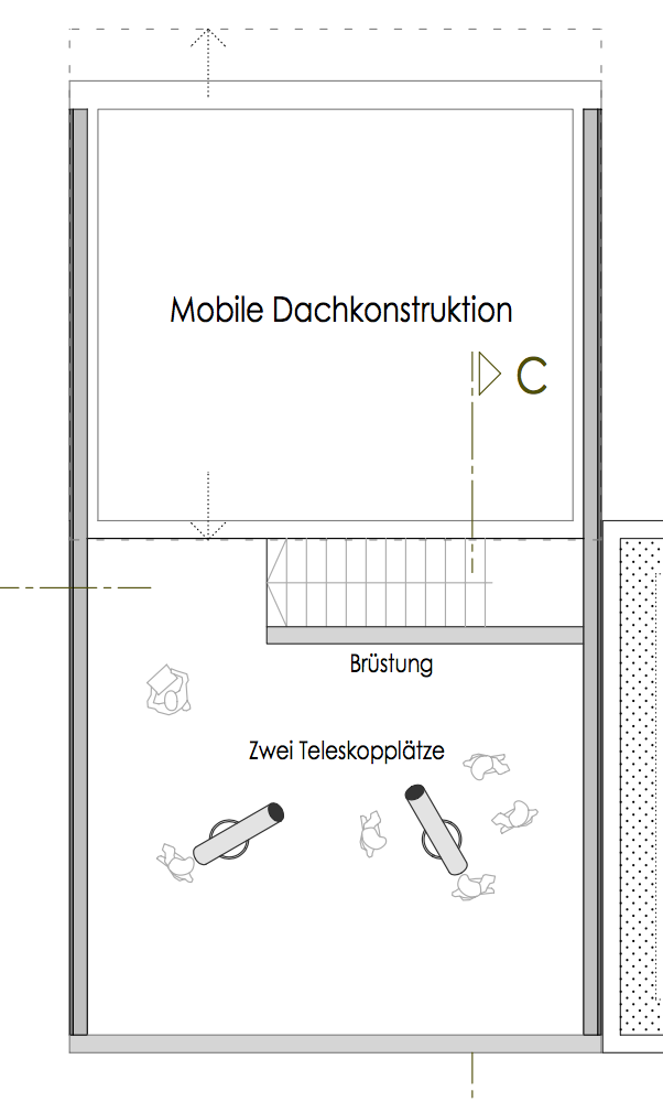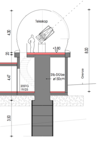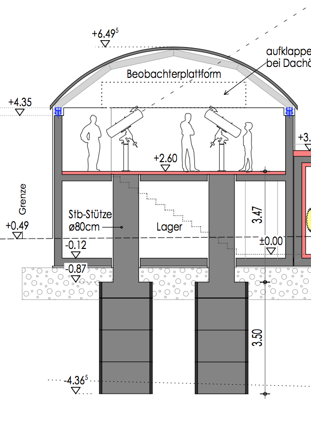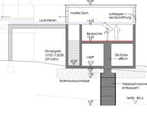 Die Planung sieht hierfür einen vom öffentlichen Betrieb der Sternwarte isolierten Rundbau vor.