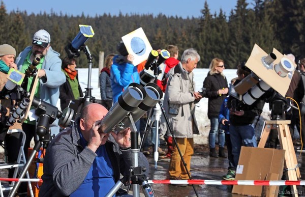 Beobachtung der partiellen Sonnenfinsternis 2015. Foto: Matthias Becker. Mit freundlicher Genehmigung der Allgäuer Zeitung.